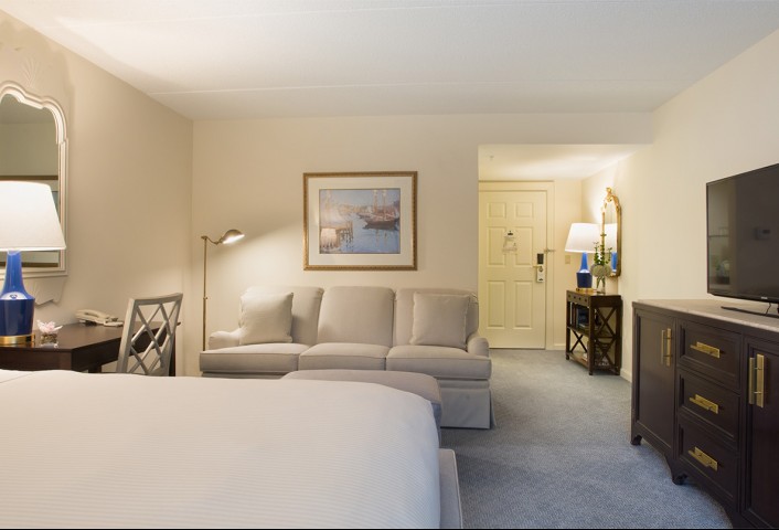 Give everyone in your group room to spread out in a room with a king-size bed, a queen-size sleeper sofa in the sitting area, and an oversized marble-tiled bathroom.